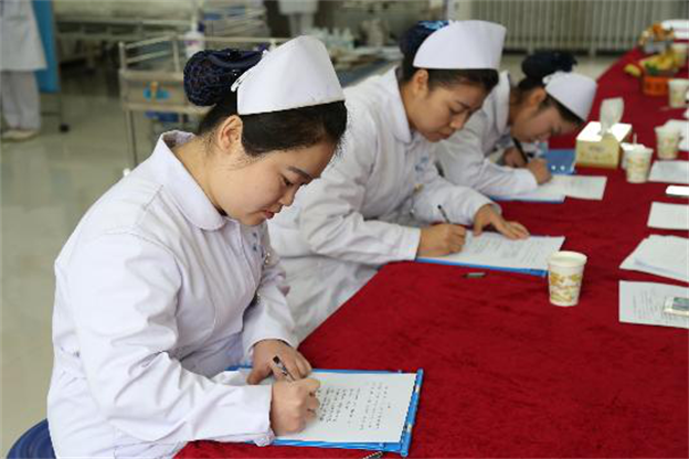 本次比赛分为笔试和技能操作两个环节,通过随机抽签的方法,抽取笔试题和操作项目,参赛老师需要在规定时间内完成两项内容,主要技能有密闭式周围静脉输液法、单人徒手心肺复苏术、多功能心电监测技术等。比赛伊始,薛院长针对本次比赛,提出了希望和要求,她希望老师们要严肃认真,赛出能力、赛出水平、赛出风格。比赛过程紧张而激烈,参赛老师热情认真,评委老师严格公正。比赛结束后,各组评委代表对比赛全程作了全面细致的点评。最后,由薛松梅院长现场公布比赛成绩,并针对本场比赛作了精彩的总结讲话。