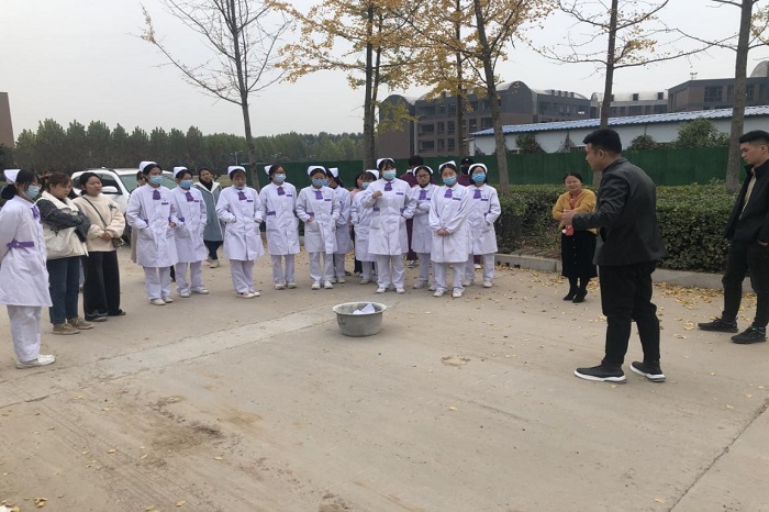 1112日上午,实训中心邀请党委保卫部乔金柱老师来进行消防安全知识的培训,本次培训的内容主要是灭火器的使用和消防疏散通道的紧急逃生方法。乔老师分别讲解了不同灭火器的使用方法与用途,又来到实训中心外面进行了演示;在实训中心二楼,乔老师就防火墙进行了操作演示和讲解,为大家上了丰富的一课消防安全课。