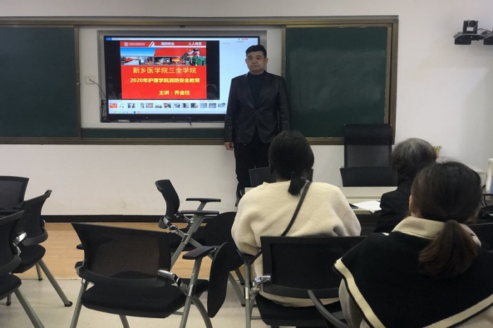 2020.11.5上午,党委保卫部乔金柱老师来实训中心进行消防安全的管理培训,实训中心主任曹瑾玲和全体护理学院安全管理员都参加了本次培训会,消防安全关系到实验室和全体教职工的财产和人身安全,其重要性不言而喻。各级部门和各楼层安全负责人都应切身负起责任,做好日常巡检、专项检查、定期/不定期检查,以便及时发现和排除高校实验室存在的消防安全隐患。